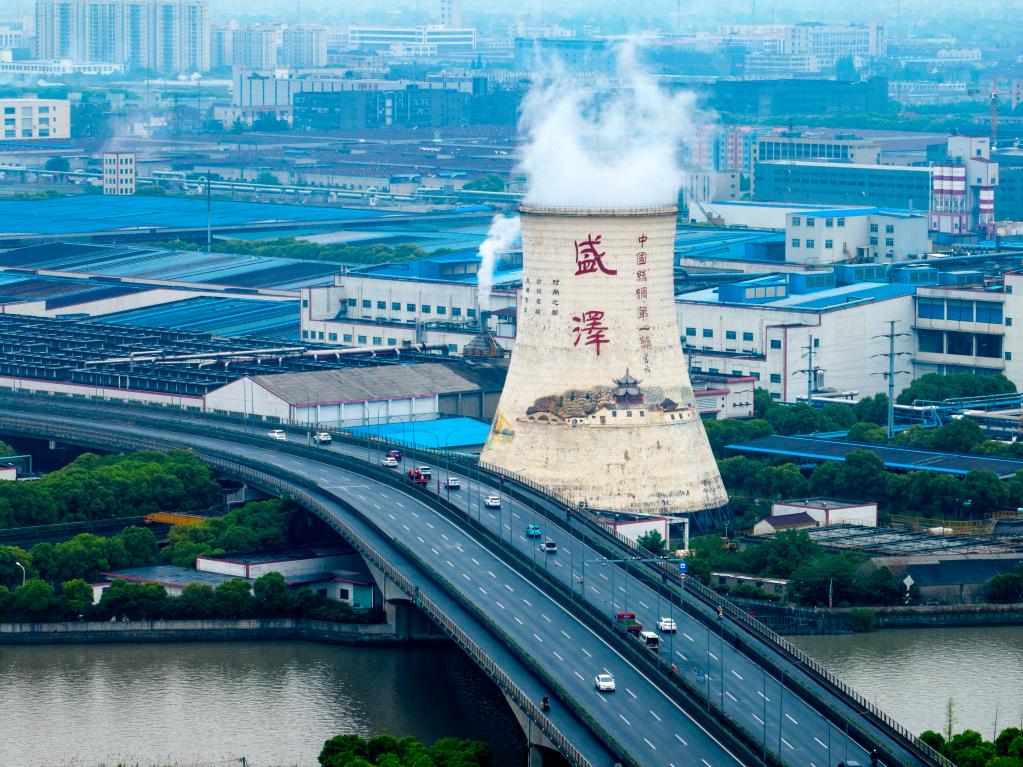 “沒想到一個小鎮(zhèn)就有‘三環(huán)’,早晚高峰還堵車。喲!這里還是‘中國絲綢第一鎮(zhèn)’。”跟隨記者一路調研的司機師傅說道。順著師傅的示意向窗外眺望,右前方高聳的白色冷卻塔,漸行漸近。塔上“盛澤”二字以及水鄉(xiāng)場景彩繪畫,讓這高55米、底部直徑約48米的冷卻塔,看起來像是一處“文化地標”。