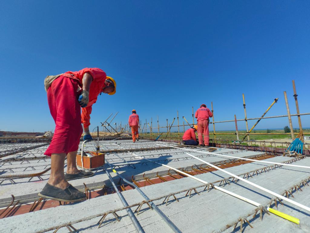 備戰(zhàn)全島封關(guān),相關(guān)硬件設施建設不能落后。在洋浦國際集裝箱碼頭附近,洋浦港封關(guān)運作項目建設現(xiàn)場一片繁忙,百余名工人頂著烈日或扎鋼筋,或拌水泥,或裝樓板,個個汗流浹背。“9月要完工,助力海南自貿(mào)港到今年底具備封關(guān)運作硬件條件?!表椖控撠熑死顤|冬說。