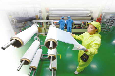 “只有這樣的構(gòu)造才能在隔絕電池正負(fù)極的情況下,還能保證鋰離子從中間自由通過(guò)??墒牵朐凇芰喜肌洗虺鲞@種小孔可不容易?!倍跑S剛介紹,當(dāng)下無(wú)論是手機(jī)、電腦,還是新能源汽車(chē),鋰電池早已與我們的生活息息相關(guān)。但由于鋰電池隔膜科技含量高,制造過(guò)程涉及多個(gè)學(xué)科,幾年前國(guó)內(nèi)的生產(chǎn)工藝、產(chǎn)品性能、產(chǎn)業(yè)鏈完整度都很低,隔膜等關(guān)鍵材料長(zhǎng)期被外資壟斷。