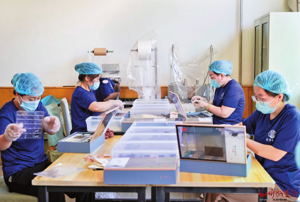 走進(jìn)山西一品緣茶葉有限責(zé)任公司制茶車間,一盤盤正在晾曬的毛建草,散發(fā)出陣陣香氣。它們在這里,經(jīng)采用傳統(tǒng)手工工藝與現(xiàn)代工藝技術(shù),通過清洗、蒸煮、揉捻、發(fā)酵、炒制、烘干、篩分、色選補(bǔ)火、壓制、包裝等工序,搖身一變成為品相精美、口感鮮醇的毛建茶。
