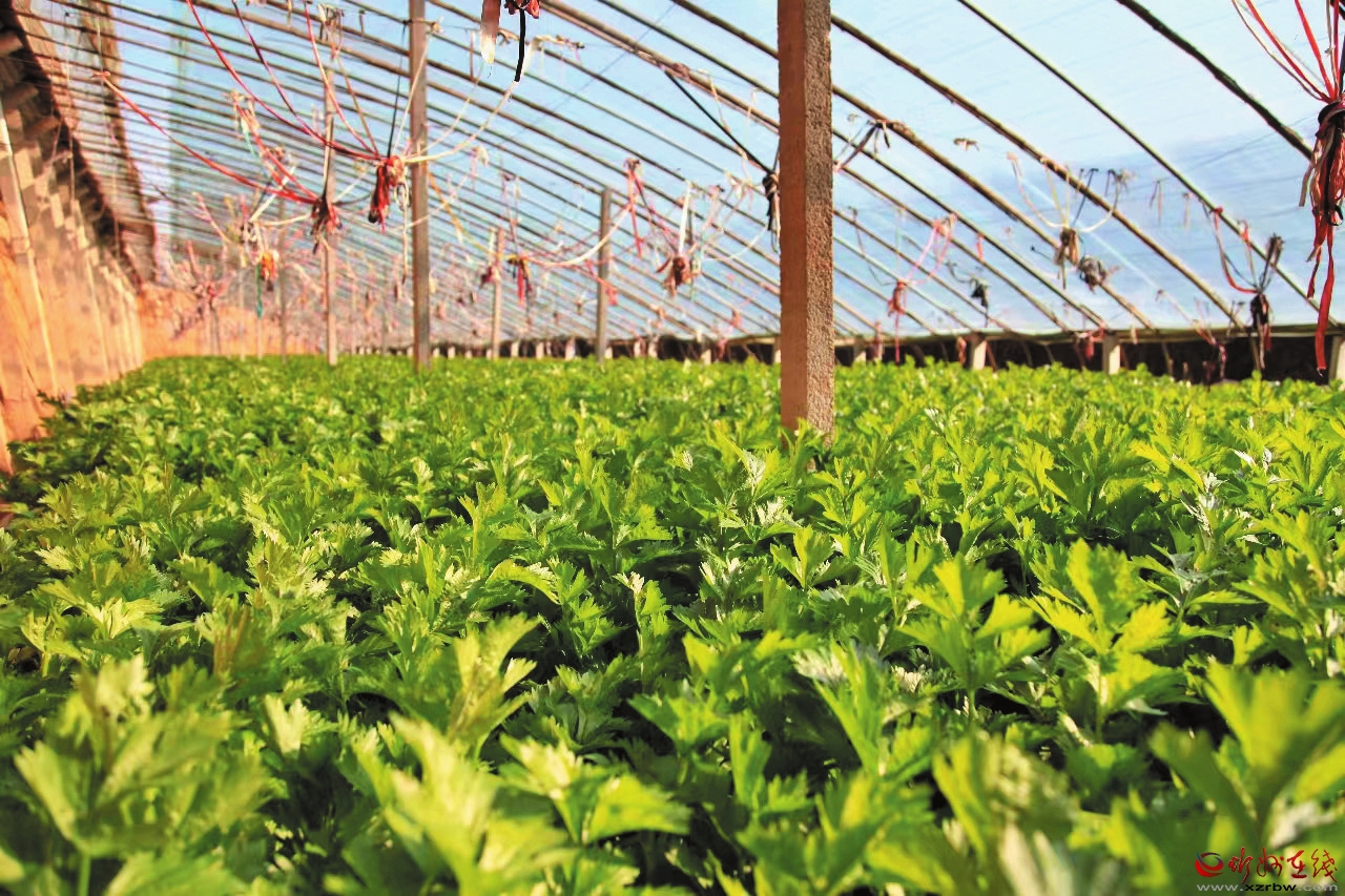 蔬菜大棚內(nèi)西芹長勢喜人。 本報(bào)記者 申 健攝