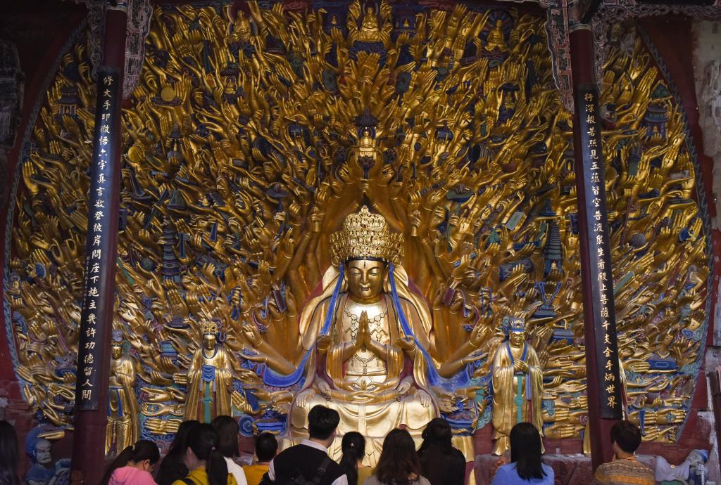 此后,隨著考古研究深入,大足境內先后發(fā)現(xiàn)上百處、共5萬余尊摩崖造像,大足石刻的歷史輪廓也逐漸清晰:始建于初唐,至兩宋達鼎盛,集儒、釋、道三教造像之大成,以北山、寶頂山、南山、石門山、石篆山5處石窟最具特色,代表了公元9世紀至13世紀世界石窟藝術的最高水平。