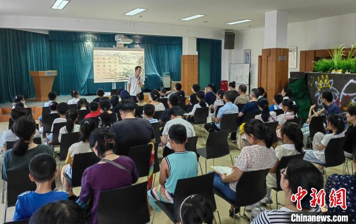 寧波圖書館“共讀Moment·閱經(jīng)典”活動現(xiàn)場幾乎座無虛席,當?shù)刂Z文教師北辰為孩子們講解柳宗元的《江雪》。 中新網(wǎng)記者 應(yīng)妮 攝