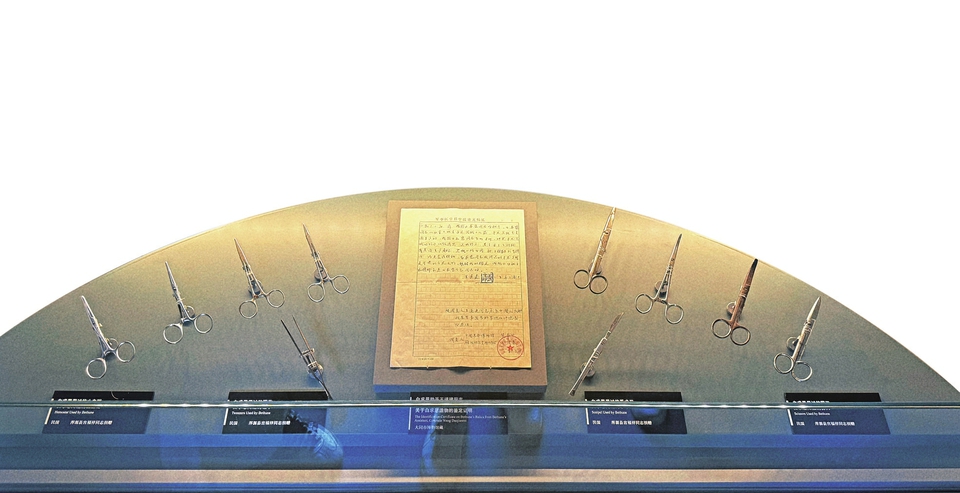 大同紅色記憶館內(nèi)有一個(gè)專屬展廳,珍藏著白求恩同志曾經(jīng)用過的12件醫(yī)療器械。這些醫(yī)療器械是白求恩從美國帶來,并曾在大同靈丘抗戰(zhàn)前線使用過的。館內(nèi)負(fù)責(zé)人任冬介紹,這些醫(yī)療器械是由大同市渾源縣王莊堡村退伍老兵宮福祥老人于1984年捐贈(zèng)給雁北文物工作站的。如今,它們已經(jīng)成為該館的“鎮(zhèn)館之寶”,見證了白求恩大夫在抗戰(zhàn)前線的無私奉獻(xiàn)和國際主義精神。