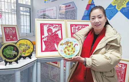 當(dāng)日,下站街道文化活動(dòng)室五顏六色、惟妙惟肖的彩色剪紙作品,也讓之前只見(jiàn)過(guò)紅色剪紙作品的記者眼前一亮?!斑@是染色剪紙。制作之前,需要先在白紙上起稿。剪出來(lái)后,會(huì)根據(jù)不同部位的特點(diǎn)進(jìn)行上色,讓作品更加生動(dòng)、更加活靈活現(xiàn)。”董淑芳介紹,這次剪紙活動(dòng)也是街道“非遺賀新春”主題活動(dòng)的一部分,圍繞蛇年主題系列進(jìn)行創(chuàng)作。