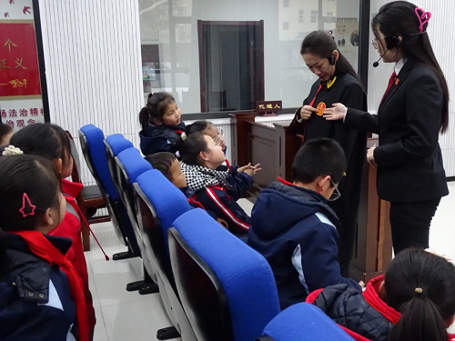 12月4日,五寨縣第四小學(xué)校40余名師生走進五寨法院,“沉浸式”學(xué)習(xí)憲法法律知識,零距離感受法院文化。黨組成員、副院長華韡,黨組成員、政治部主任馮超宇陪同參觀。 “訴訟服務(wù)中心是人民法院審判工作的窗口,在這里進行立案登記……”在訴訟服務(wù)中心,立案庭庭長介紹了法院訴服中心的內(nèi)設(shè)情況,并讓同學(xué)們觀看了普法動漫《小馬里奧成長記》,用新穎的方式讓法律說話,引導(dǎo)青少年學(xué)習(xí)法律知識,識別不法行為,保護自身合法權(quán)益。