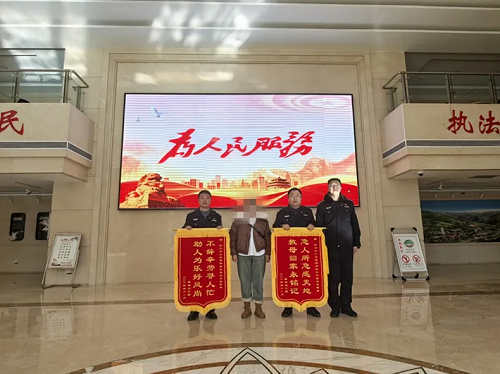 12月9日,老人的女兒來到忻州市公安局,向民警鄭重地送上錦旗,緊緊握住民警的手,滿含感激地說 “謝謝,謝謝!實(shí)在是不知該怎么感謝你!為你們做了兩面錦旗!”