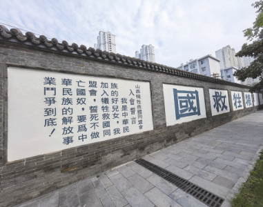 山西國民師范舊址革命活動紀(jì)念館珍藏著兩枚山西犧牲救國同盟會的會徽。會徽為銅質(zhì)、圓形,圖案以民國時期中國地圖為背景,正中書有“犧牲救國”四個大字,是國家一級文物。