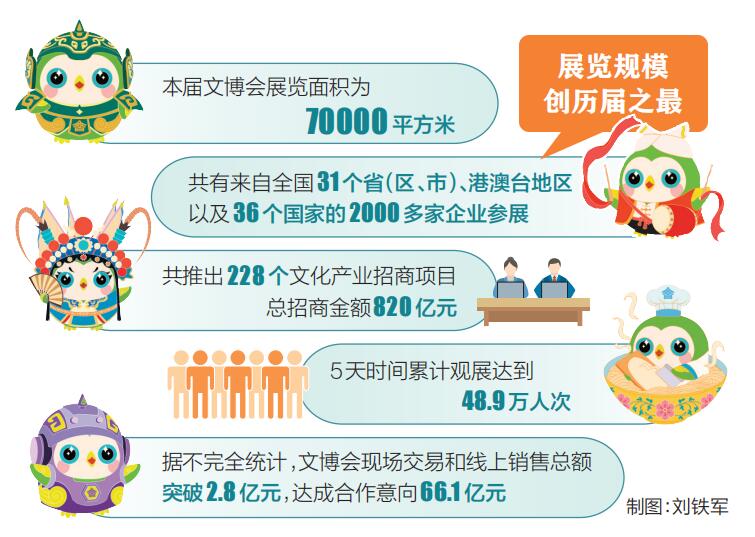 此外,為文博會(huì)專門開通的6條免費(fèi)公交專線,累計(jì)運(yùn)行3200余班次,運(yùn)送觀眾超15萬(wàn)人次。1500多名工作人員、600余名公安與安保人員、120名交警、280余名公交司機(jī)、204名志愿者及530名場(chǎng)館服務(wù)人員,以及消防、文旅、環(huán)衛(wèi)、醫(yī)療、市場(chǎng)監(jiān)管、水電氣、通信等部門的干部職工,始終堅(jiān)守文博會(huì)現(xiàn)場(chǎng),為廣大群眾有序觀展、舒適觀展創(chuàng)造了良好環(huán)境。